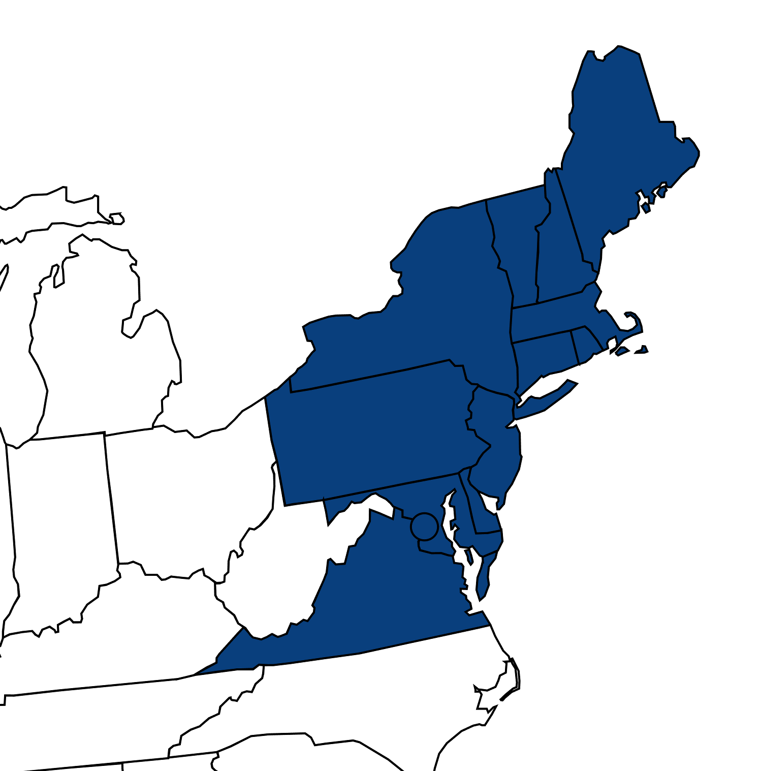 - Mid-Atlantic (New York, New Jersey, Pennsylvania, Delaware, Maryland, Virginia)